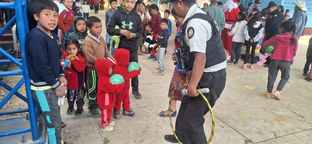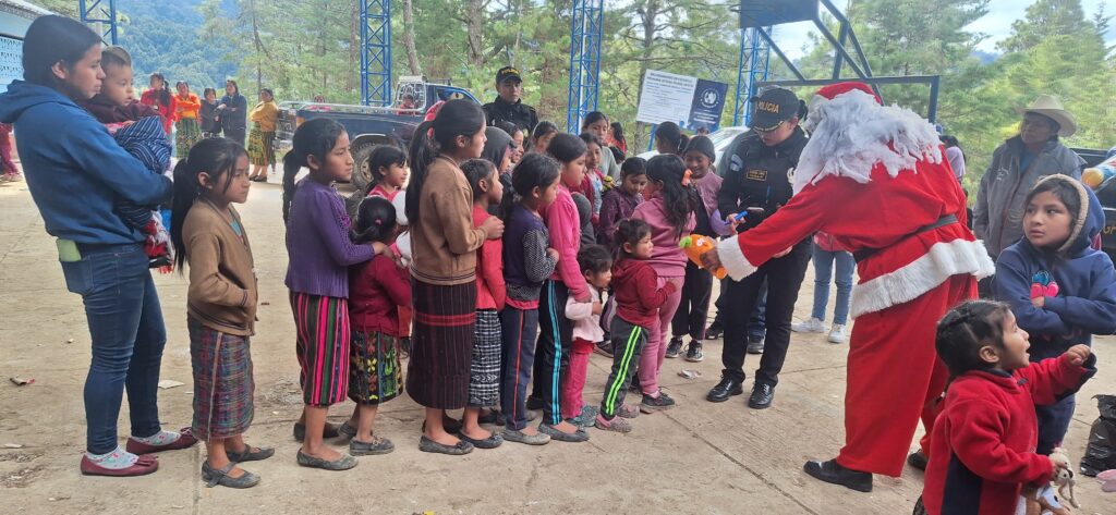 Se contó con la presencia del personaje de Santa Claus y al finalizar se compartió una refacción con todos los participantes (295 niños y niñas, 90 padres, agentes de la Subdirección General de Prevención del Delito, líderes comunitarios y elementos policiales de la Subestación de Cabricán).
