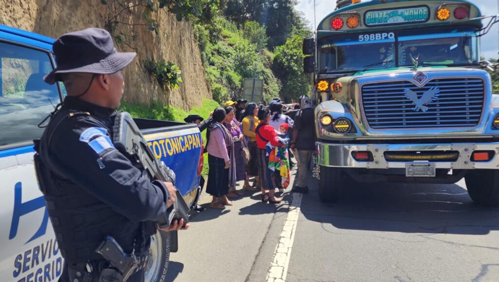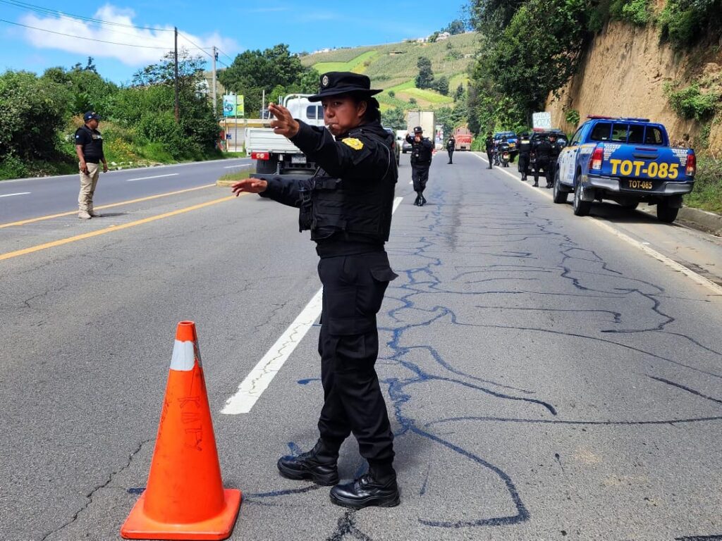 Este viernes, agentes de la Policía Nacional Civil (PNC) desarrollan operativos de seguridad en el kilómetro 181 de la ruta Interamericana, jurisdicción de Totonicapán.