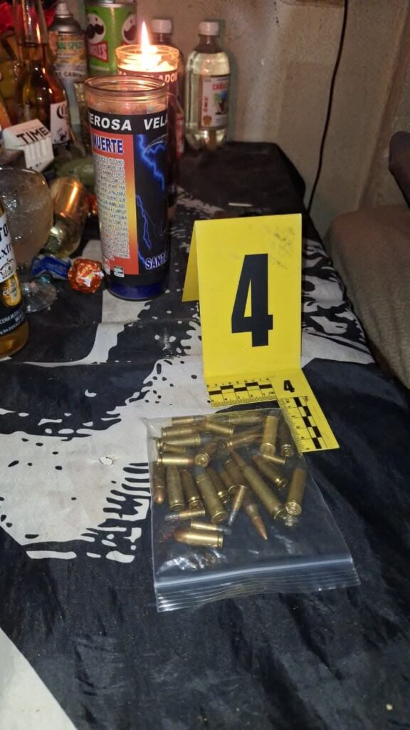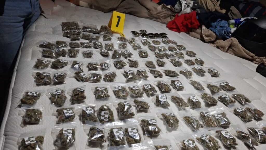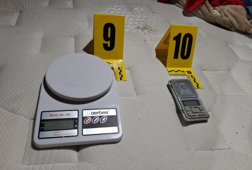 En un inmueble fueron localizadas dos armas hechizas, una pistola de gas comprimido, 125 bolsas con marihuana, cuatro teléfonos, 27 municiones de diferentes calibres y dos pesas digitales, los cuales fueron secuestradas para fortalecer la investigación.