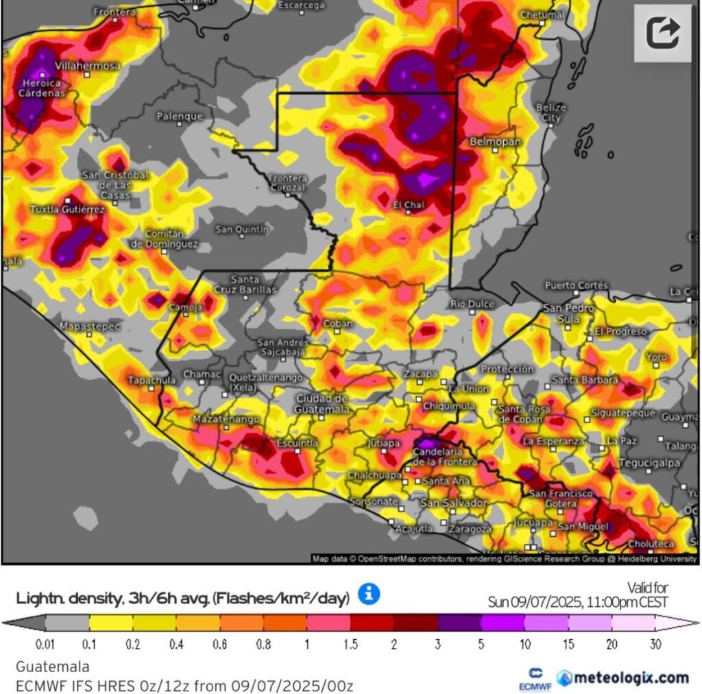 No se descarta el desarrollo de tormentas severas, acompañadas de fuertes vientos, caída de granizo y acumulados significativos de lluvia.