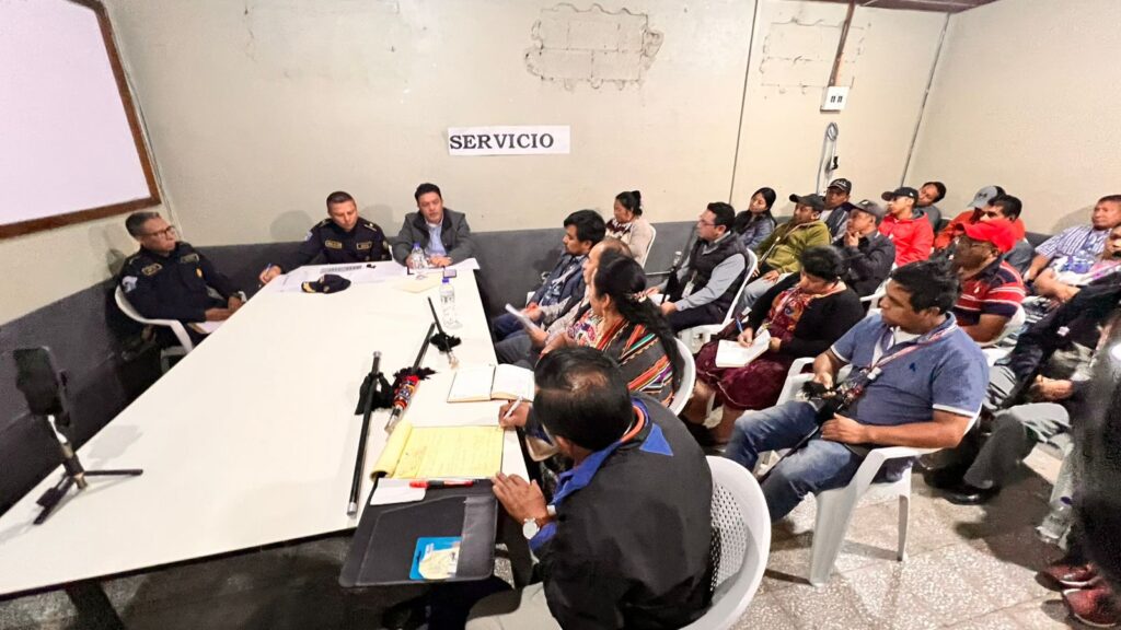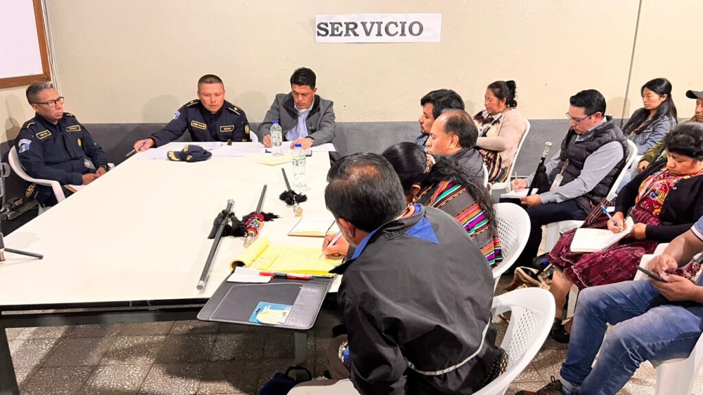 Hoy un grupo de vecinos, junto con representantes de las alcaldías comunitarias, acudieron a la Comisaría 44 de Totonicapán en compañía del diputado por el departamento, Albero de León, con el objetivo de fiscalizar el trabajo de la Policía Nacional Civil (PNC) y exigir acciones concretas en seguridad.