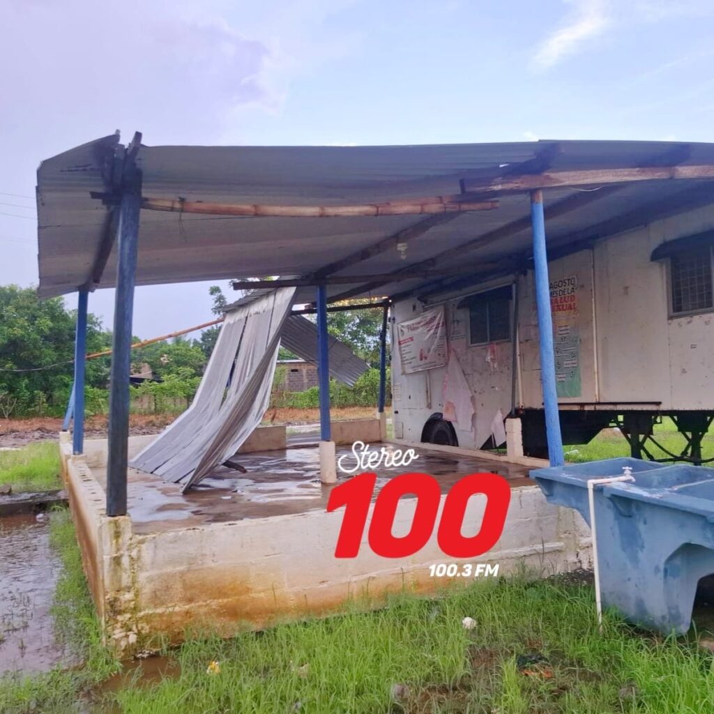 Fuerte ventarrón y lluvia destecha el puesto de salud móvil situado en la Lotificacion Flamencos fase 1 de la zona 4 de Retalhuleu.