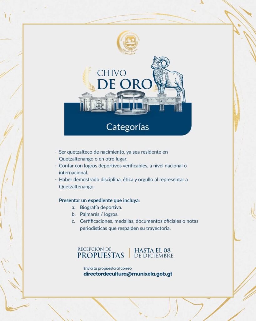 Quetzaltenango busca a sus estrellas: Abiertas las postulaciones para el Botón y Chivo de Oro 2025.