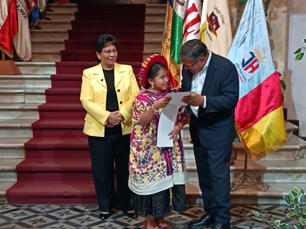 Dayana Belén Coyoy Ordóñez, actual Pequeña Flor del Pueblo Maya 2025-2026, también fue reconocida por autoridades gubernamentales por ser una estudiante destacada.