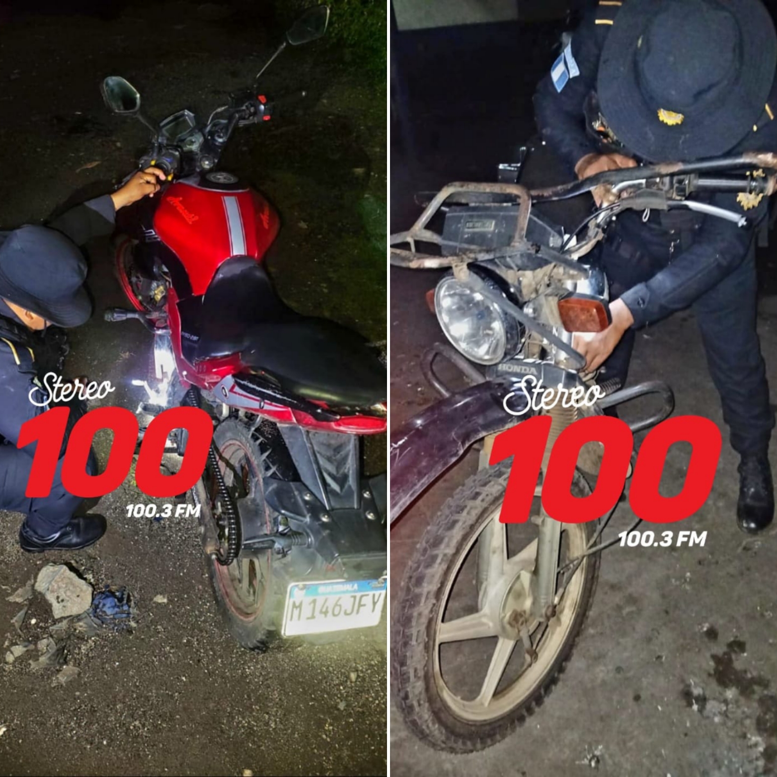 Agentes de la Policía Nacional Civil (PNC), durante recorridos de seguridad ciudadana, recuperan dos motocicletas con reporte de robo en Retalhuleu.