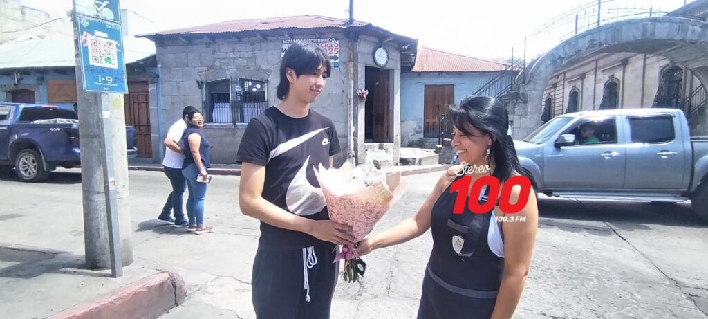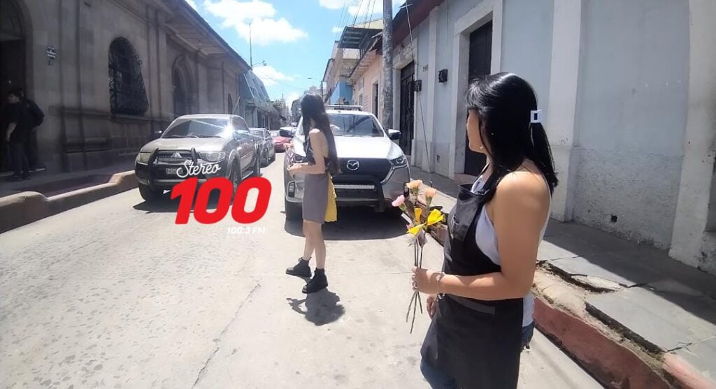 Este jueves, debido al aumento de inseguridad en Quetzaltenango, personal de una florestería en la zona 1 de Xela, regala flores a los pilotos quienes transitan desde el Parque a Centroamérica al Bolívar. El mensaje es promover la paz.