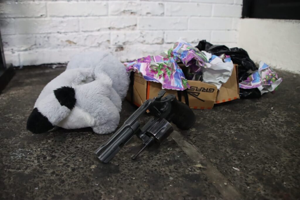 Investigadores de la División Nacional contra el Desarrollo Criminal de las Pandillas (DIPANDA) de la Policía Nacional Civil (PNC) localizaron un revólver oculto dentro de un peluche que se encontraba envuelto como un regalo, durante un operativo en la colonia Las Charcas, zona 11 de la ciudad de Guatemala.