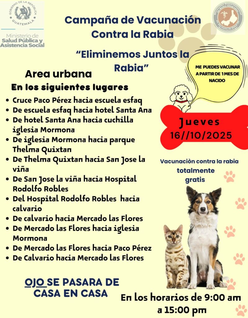 Este miércoles continuó en Quetzaltenango la campaña de vacunación antirrábica para perros y gatos, la cual es organizada por el Ministerio de Salud Pública y Asistencia Social (MSPAS).
