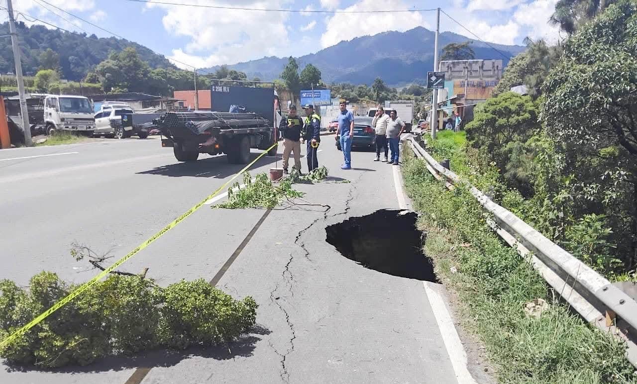 Debido a las fuertes lluvias registradas en los últimos días, se reportó la formación de un socavón entre los kilómetros 212 y 213, en el sector conocido como entrada a La Regional, en San Juan Ostuncalco, Quetzaltenango.