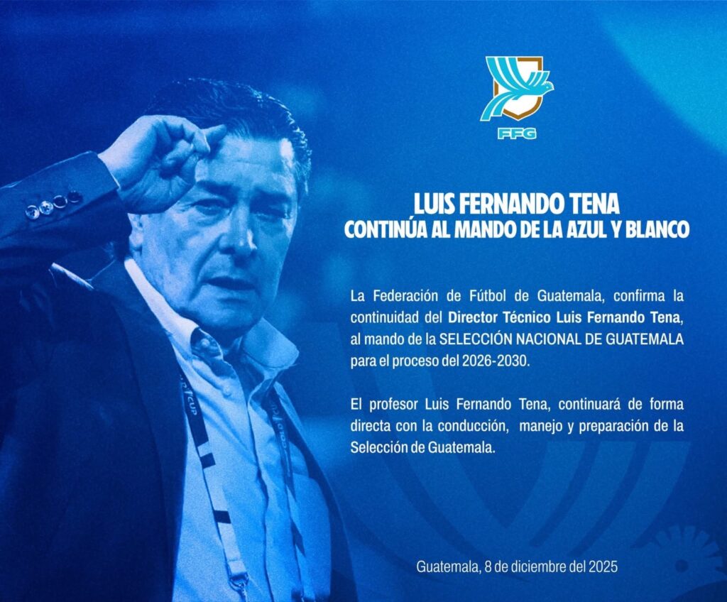 Este lunes, en redes sociales, la Federación Nacional de Fútbol de #Guatemala confirmó que el técnico mexicano, Luis Fernando Tena, continuará al frente de la Selección Nacional Mayor.