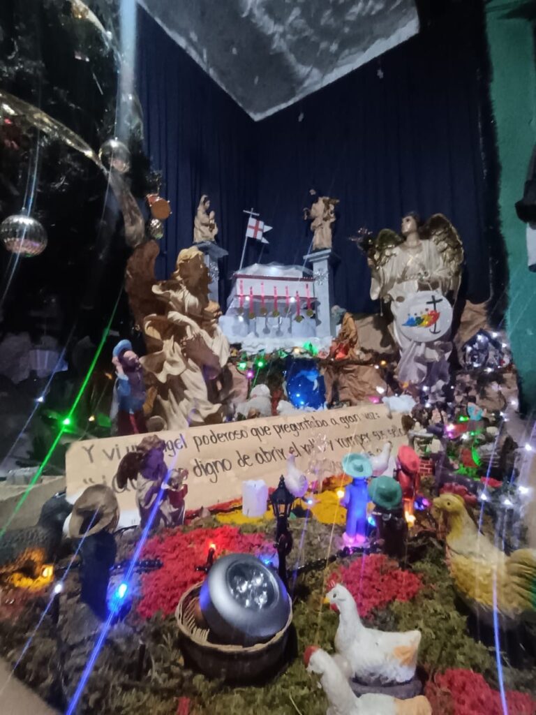 La familia Pérez, residente en la diagonal 11 de la zona 1 de Quetzaltenango, ya ha preparado su tradicional nacimiento navideño, el cual este año presenta una temática especial inspirada en el Apocalipsis, capítulo 5, versículo 2.
