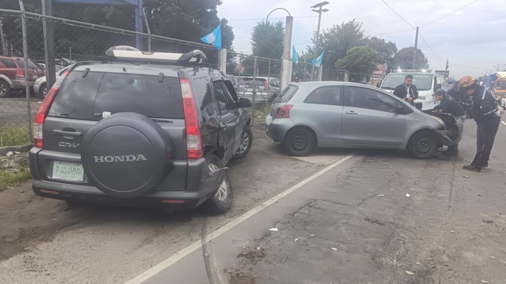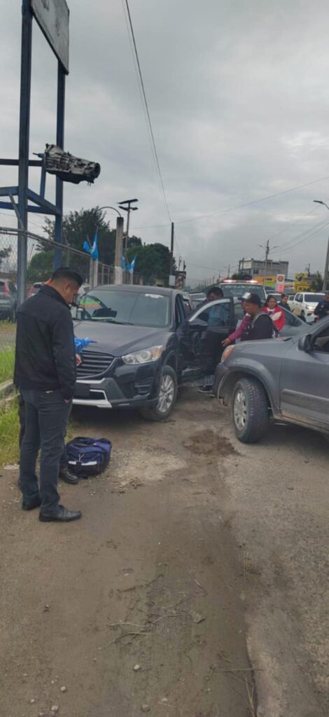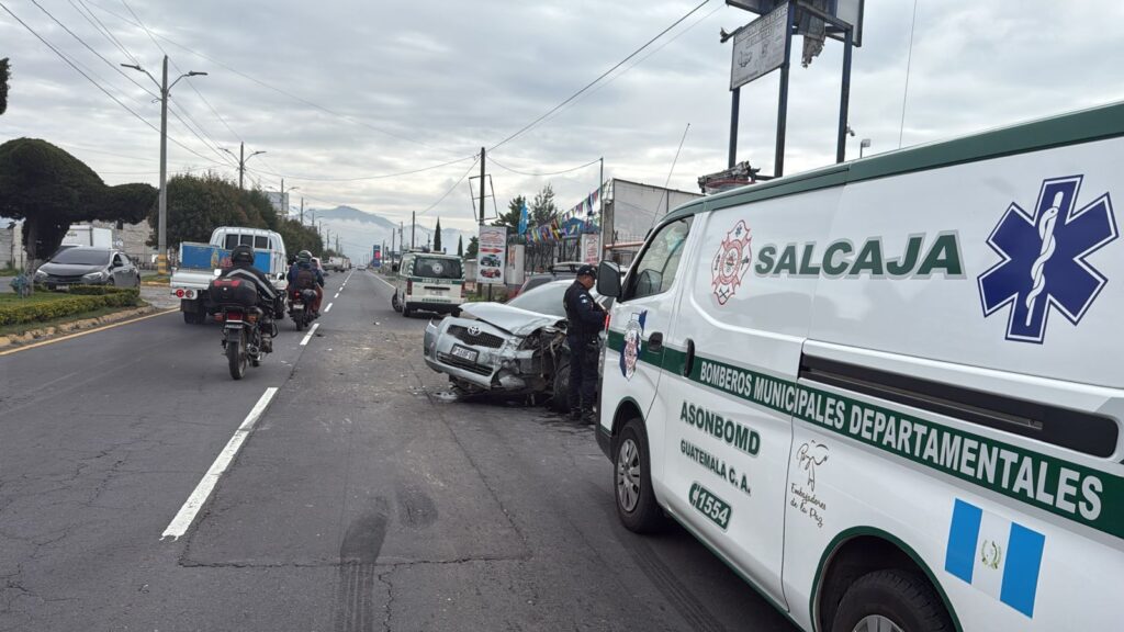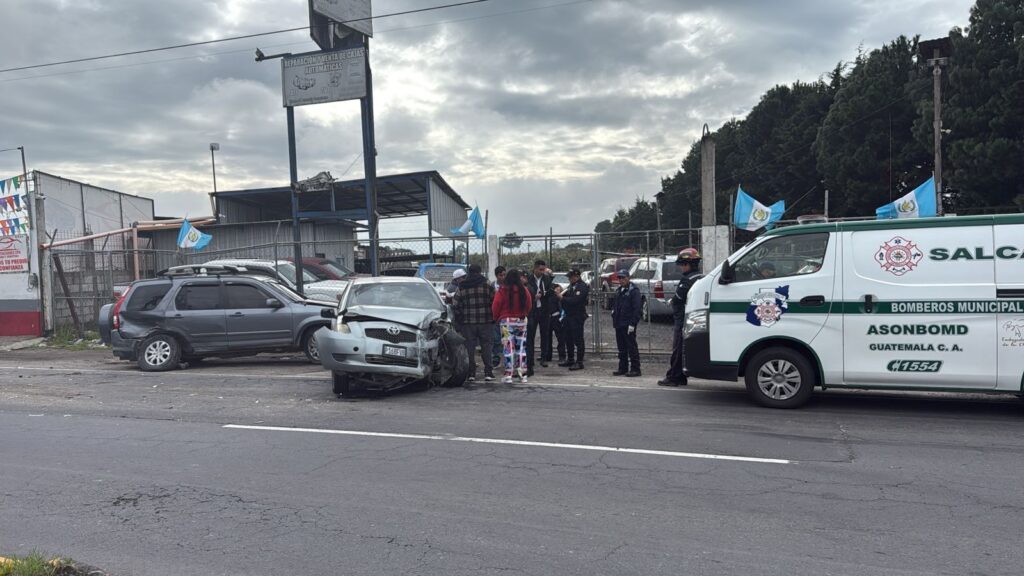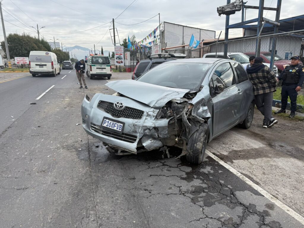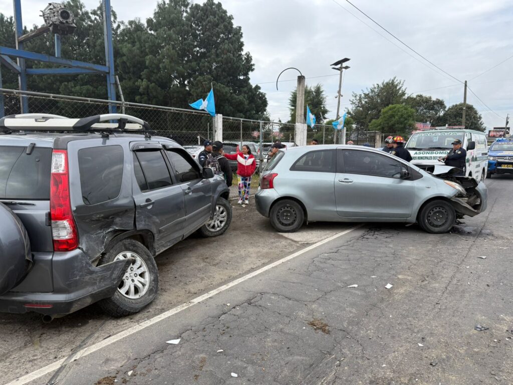 Este lunes un hombre resultó herido y otro con crisis nerviosa en una triple colisión vehicular en el kilómetro 191 de la circunvalación de Salcajá, Quetzaltenango.