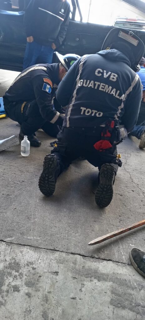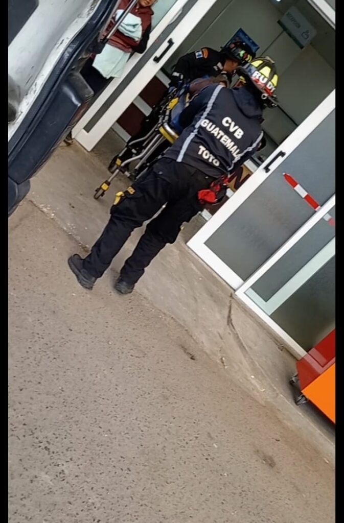 Los socorristas indican que el hombre manipulaba planchas de metal cuando fue el accidente. Fue estabilizado y trasladado al Hospital Departamental de Totonicapán.