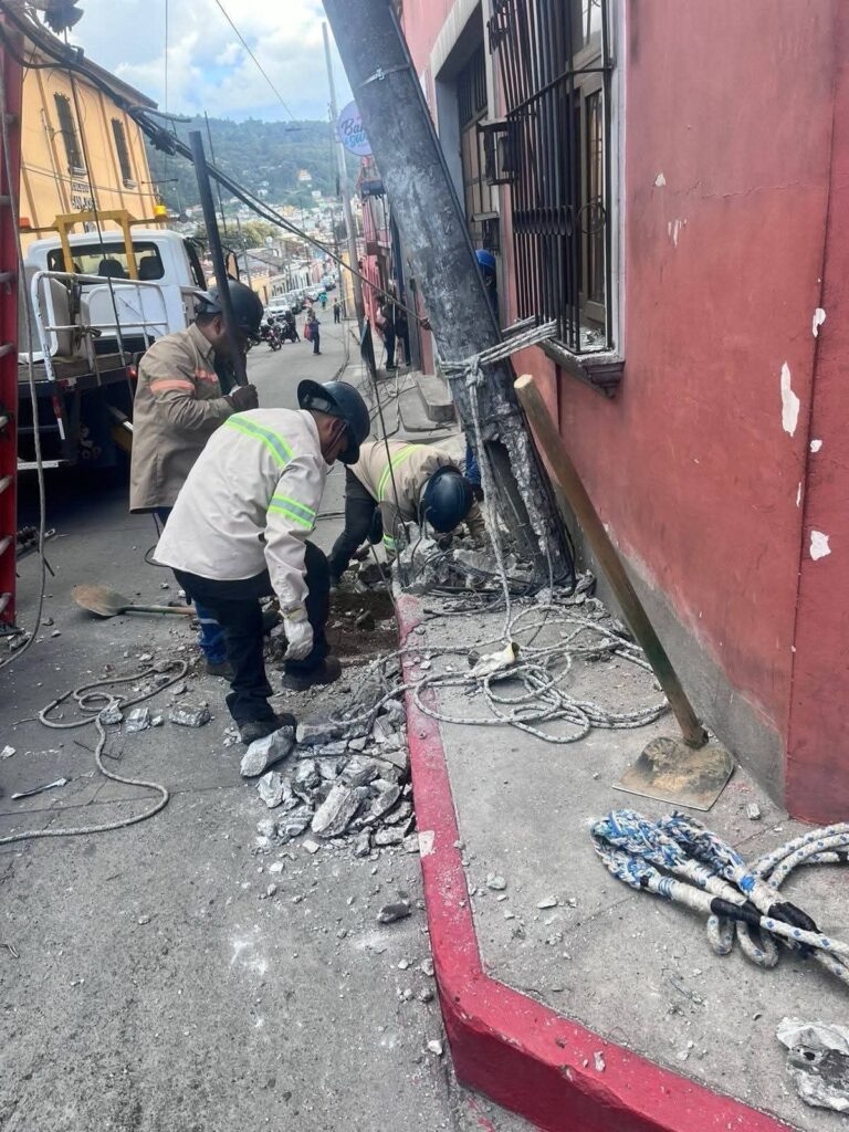 Ayer, un bus urbano de la ruta 20 impactó un poste de electricidad, el cual fue sustituido posteriormente por la Empresa Eléctrica Municipal de Quetzaltenango (EEMQ).