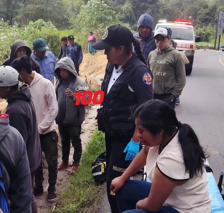 En el lugar, un vehículo cayó a un barranco, dejando como saldo a una mujer herida, quien fue estabilizada y trasladada al Hospital del IGSS en Quetzaltenango.