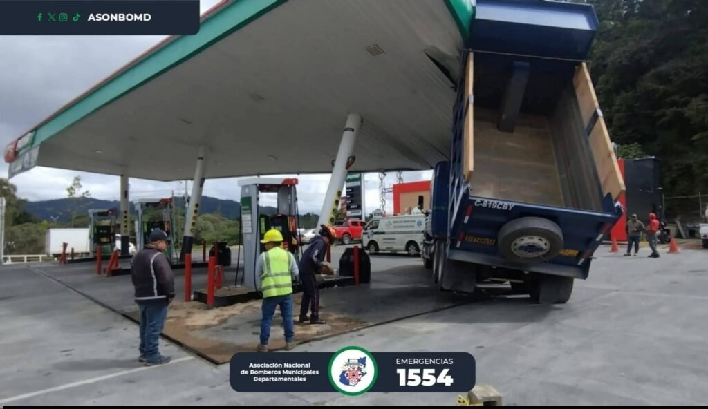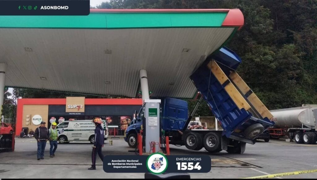Este viernes, en la ruta de San Lucas hacia Santa Lucía Milpas Altas, Sacatepéquez, se registró un accidente de tránsito cuando un vehículo de transporte pesado impactó contra una gasolinera.