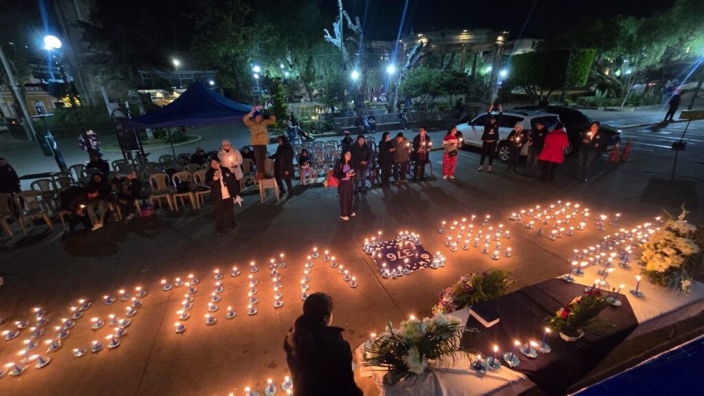 ¡NO + VIOLENCIA! es el llamado que retumba esta noche en el parque central altense, mientras se encienden velas como luz de esperanza, memoria y acción colectiva.