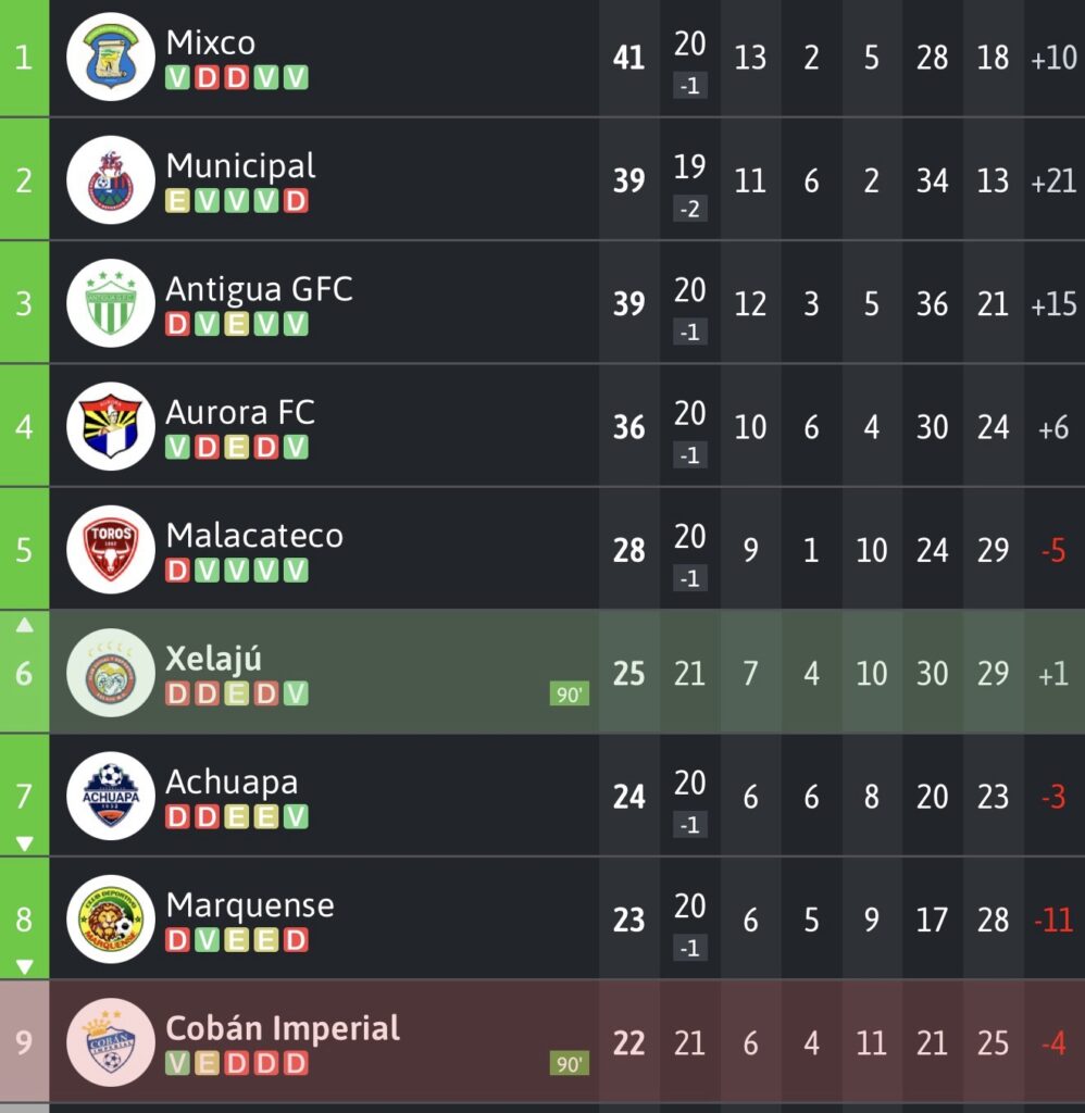 El club altense se mantiene tres puntos arriba del noveno lugar, precisamente Cobán Imperial, por lo que el triunfo de hoy resulta determinante en la pelea por la clasificación.