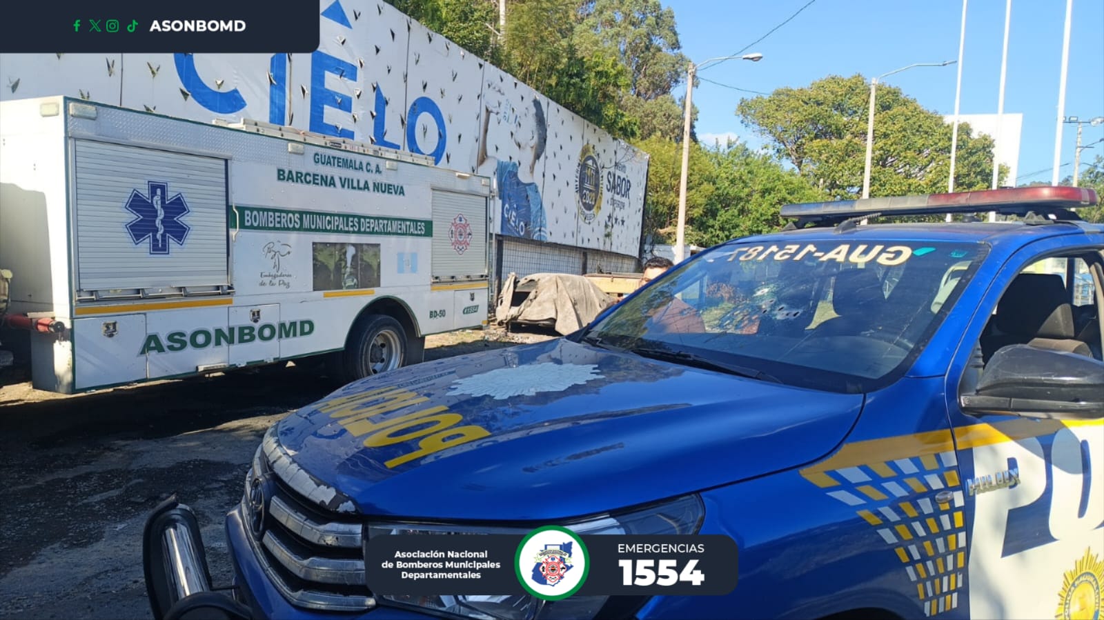 Este domingo, a las instalaciones de la estación de Bomberos Municipales Departamentales de Bárcena, Villa Nueva, Guatemala, llega una autopatrulla de la Policía Nacional Civil (PNC) con múltiples impactos de proyectil de arma de fuego.
