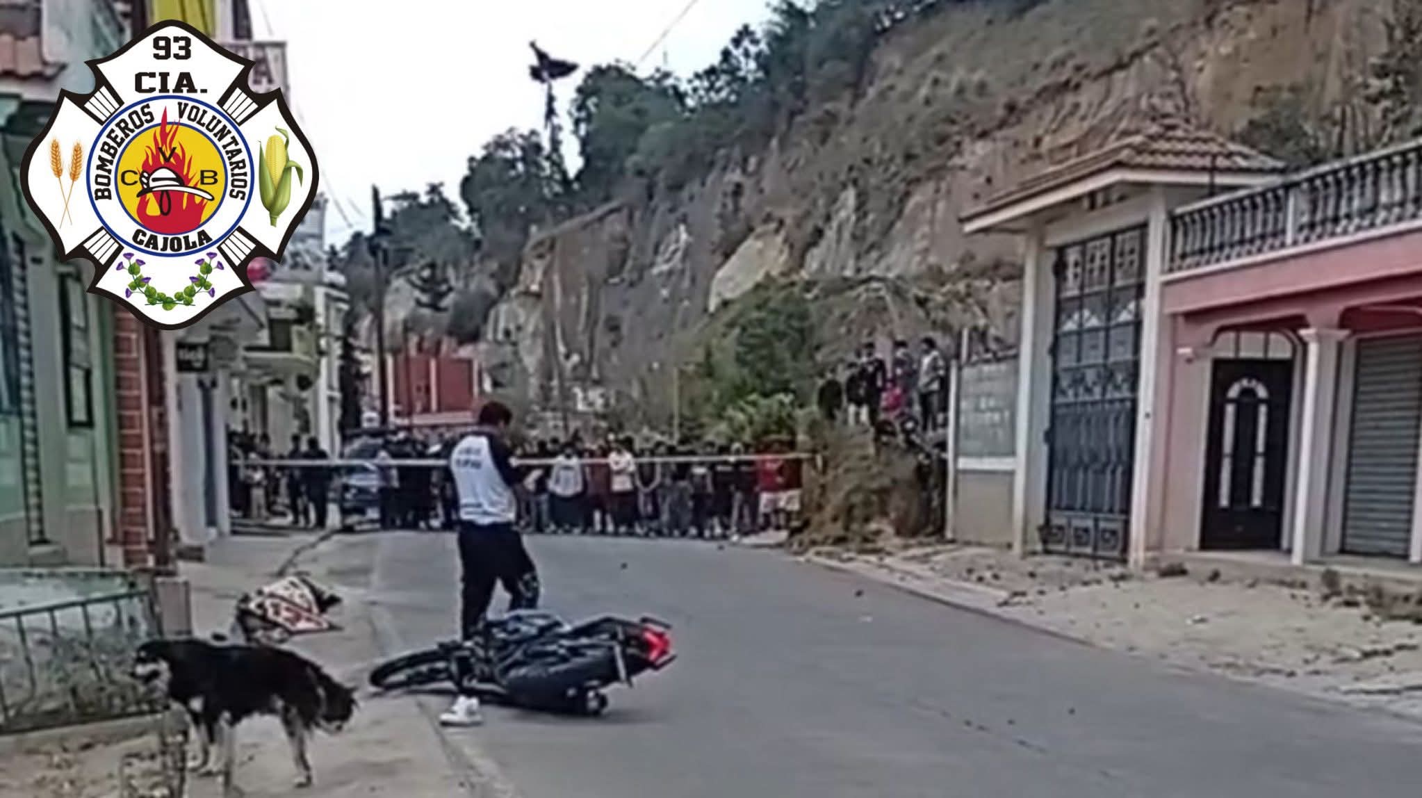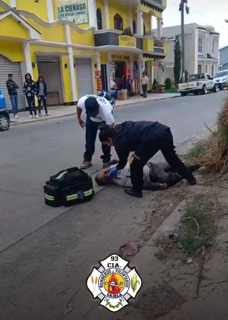 Bomberos Voluntarios de la 93 Compañía de Cajolá atendieron la emergencia, donde un motorista, quien según curiosos, conducía a excesiva velocidad, arrolló a un hombre.