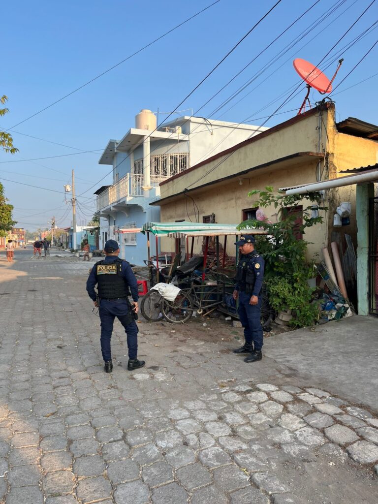 Los operativos, en coordinación con la Fiscalía Antiextorsiones, se desarrollan en un inmueble en la avenida Mazatenango, Champerico, Retalhuleu.