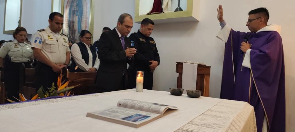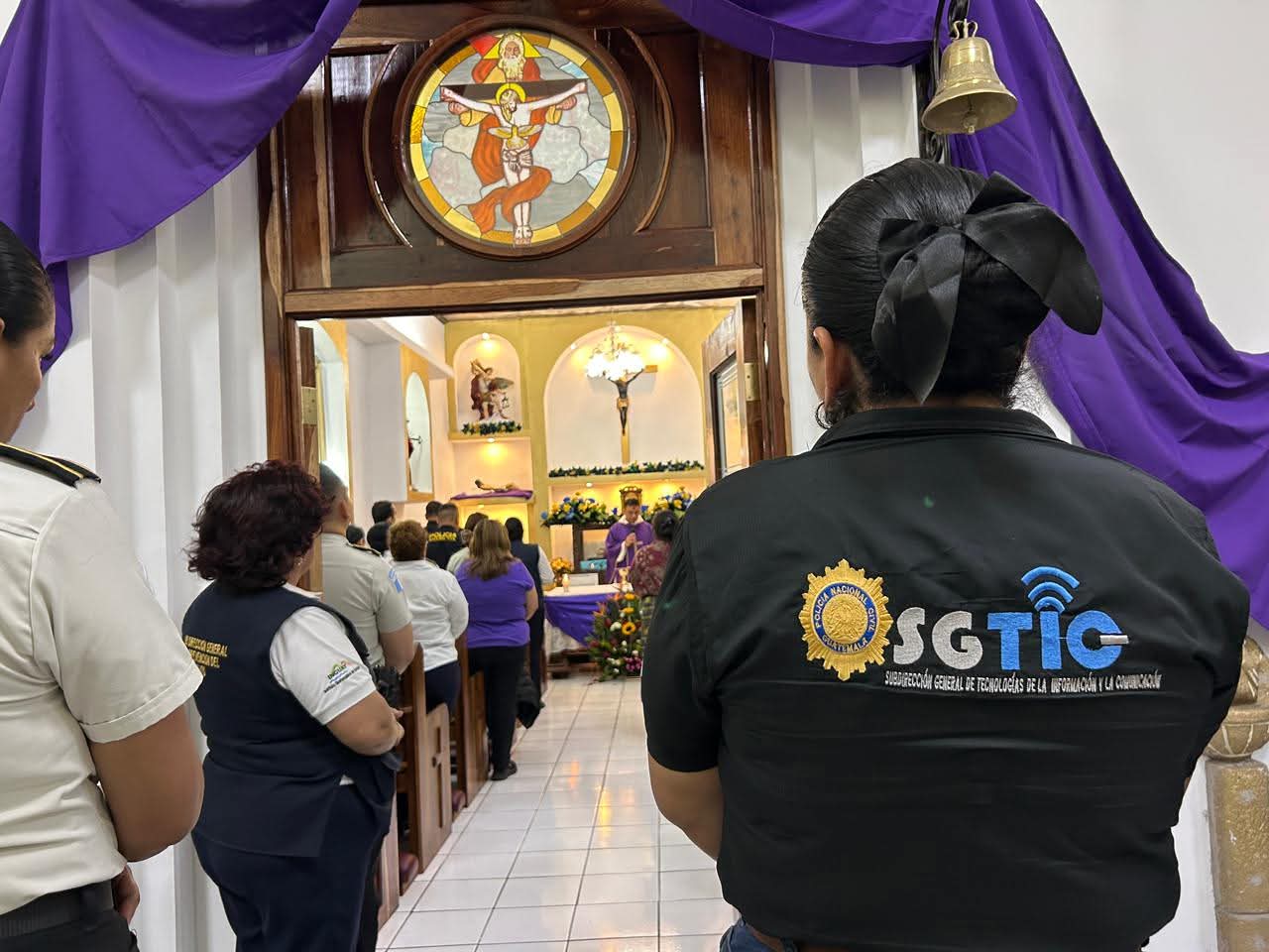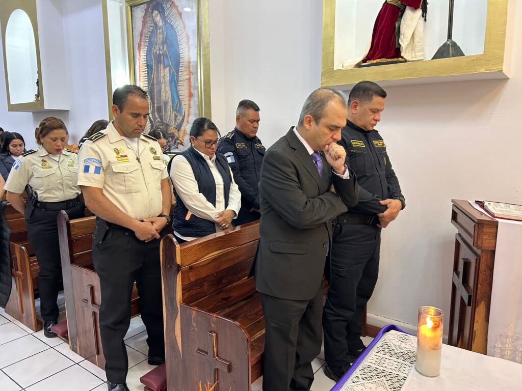 La misa fue dirigida por Fray Geovanny, párroco de la iglesia Santo Domingo, y participaron el Viceministro de Tecnología de la Información, William Cameros; el Director General Adjunto, Héctor González Prera; el Subdirector General de Prevención del Delito, Pablo Rodríguez Ismalej, y policías de varias especialidades, entre ellas, Dipafront, SGAIA, DIP, Interpol y FEP.