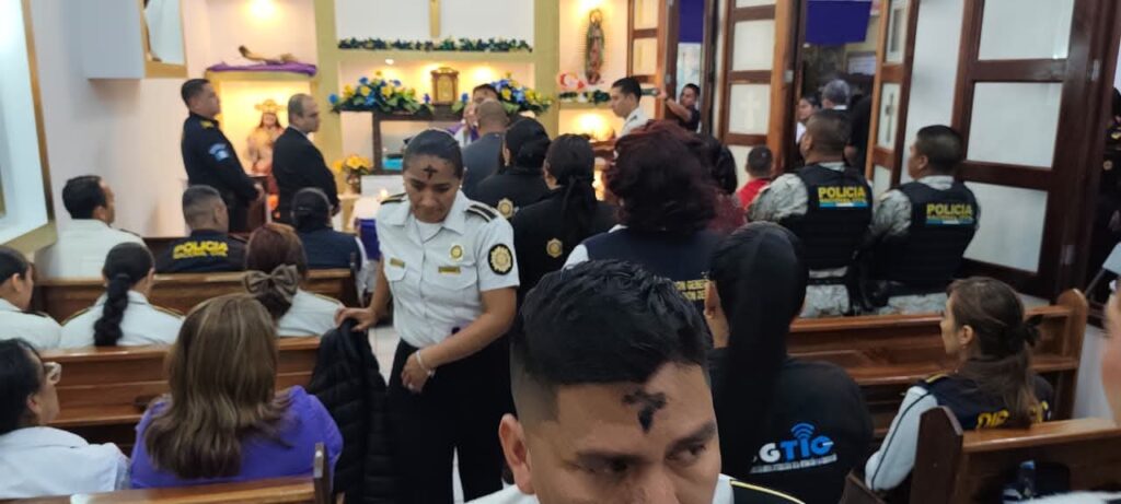 Este día, agentes de la Dirección General de la Policía Nacional Civil (PNC), por el Miércoles de Ceniza, desarrollan una misa de reflexión espiritual dirigida al personal policial en descanso.
