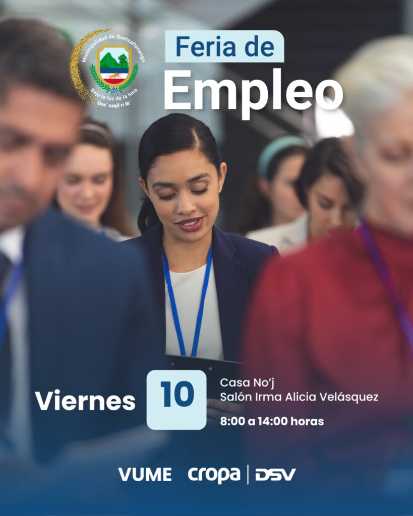 La Municipalidad de Quetzaltenango invita a la población a participar, este viernes 10 de abril, en una Feria de Empleo, la cual tiene como objetivo brindar oportunidades laborales a quienes se encuentran en búsqueda de trabajo.