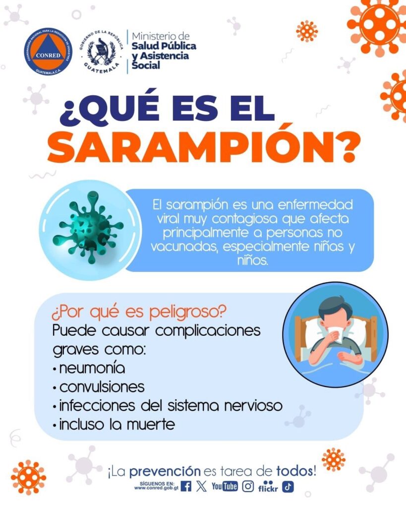 Asimismo, se hizo un llamado urgente a padres de familia y población en general a revisar y completar los esquemas de vacunación SPR, especialmente en la niñez y en grupos vulnerables, recordando que la vacunación es la herramienta más eficaz para prevenir casos graves y complicaciones asociadas a esta enfermedad.