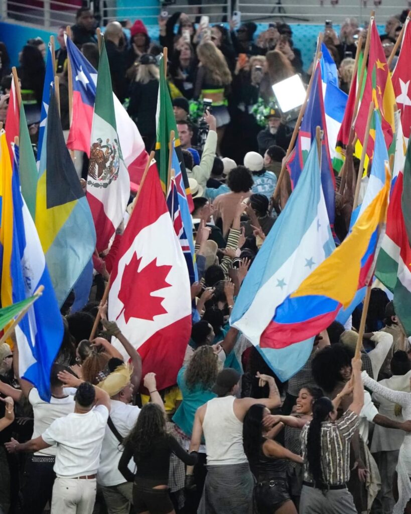 Casi al final de su show el boricua gritó «God Bless America» para inmediatamente nombrar no solo a Estados Unidos, sino pasar lista por todos los países del continente americano, en un claro recordatorio de que América trasciende las fronteras estadounidenses y que el propio Estados Unidos está compuesto por un crisol de nacionalidades latinoamericanas.