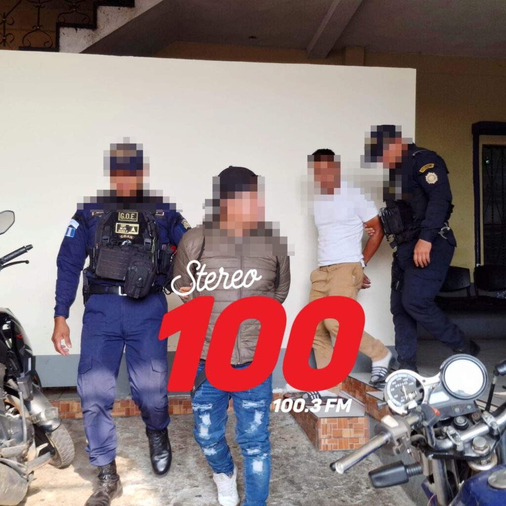 Los detenidos fueron identificados como Pedro Caal Misti, de 32 años, señalado como soldado activo del Ejército de Guatemala, y Carlos Eduardo Ramírez Argueta, de 28 años. Ambos se conducían en la motocicleta con placas M-446FTN, la cual también fue consignada.