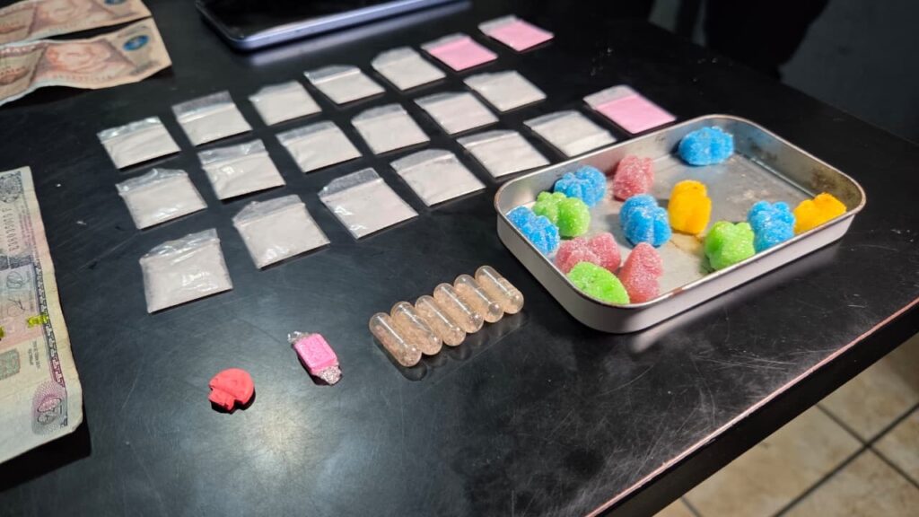 Erick “N”, de 50 años, fue sorprendido en el establecimiento «Sublime» con una variedad de estupefacientes que incluyen Tusoquetamina, MDMA y LSD en presentación de dulces. Agentes de la SGAIA confirmaron la pureza de los ilícitos.