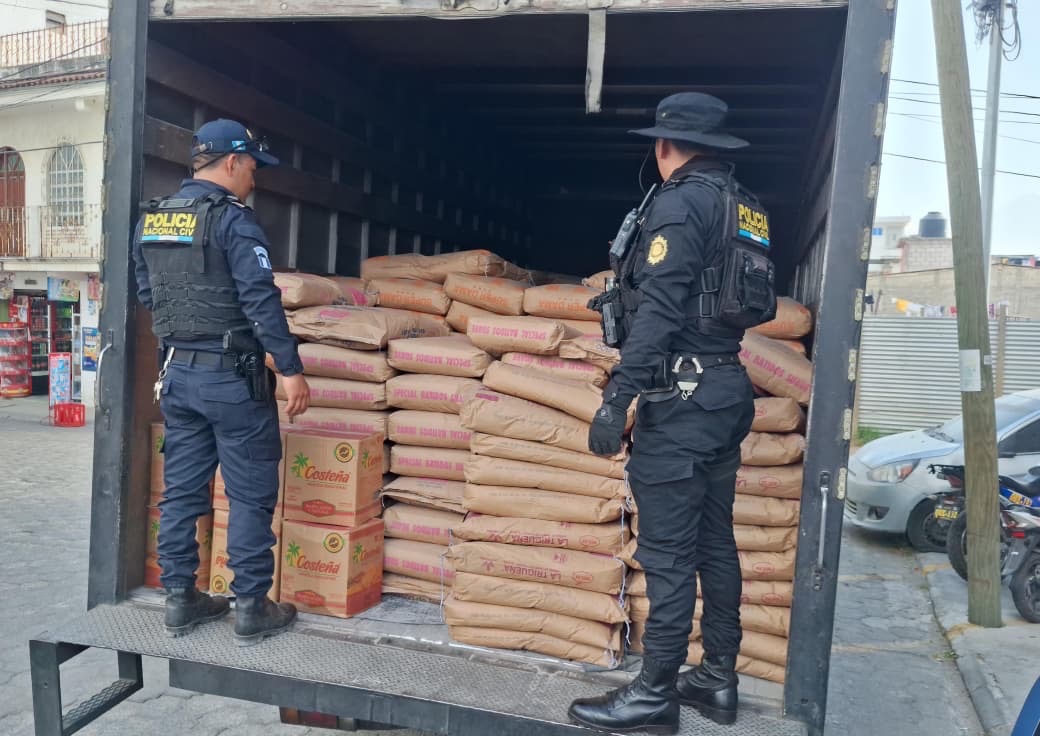 Según el reporte policial, el vehículo transportaba 250 quintales de harina y varias cajas de manteca, mercadería valorada aproximadamente en Q60 mil. Durante la inspección, los agentes también localizaron en el interior del camión un bloqueador de señales de telefonía y GPS, presuntamente utilizado para evitar la localización del vehículo.