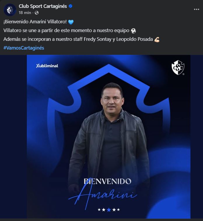 El Club Sport Cartaginés de Costa Rica anunció, de manera oficial, la contratación del entrenador guatemalteco, Amarini Villatoro, quien asumirá la dirección técnica del conjunto blanquiazul de cara a la próxima temporada.