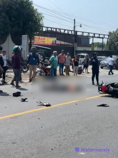 En una pasola viajaba una mujer, quien colisionó con otro motorista. Cuerpos de socorro acudieron al lugar para auxiliar a los afectados.