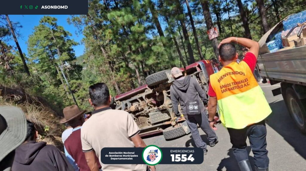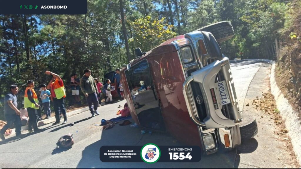 Este jueves cinco personas resultan heridas, luego de la volcadura de picop en San Bartolo Aguas Calientes, Totonicapán.