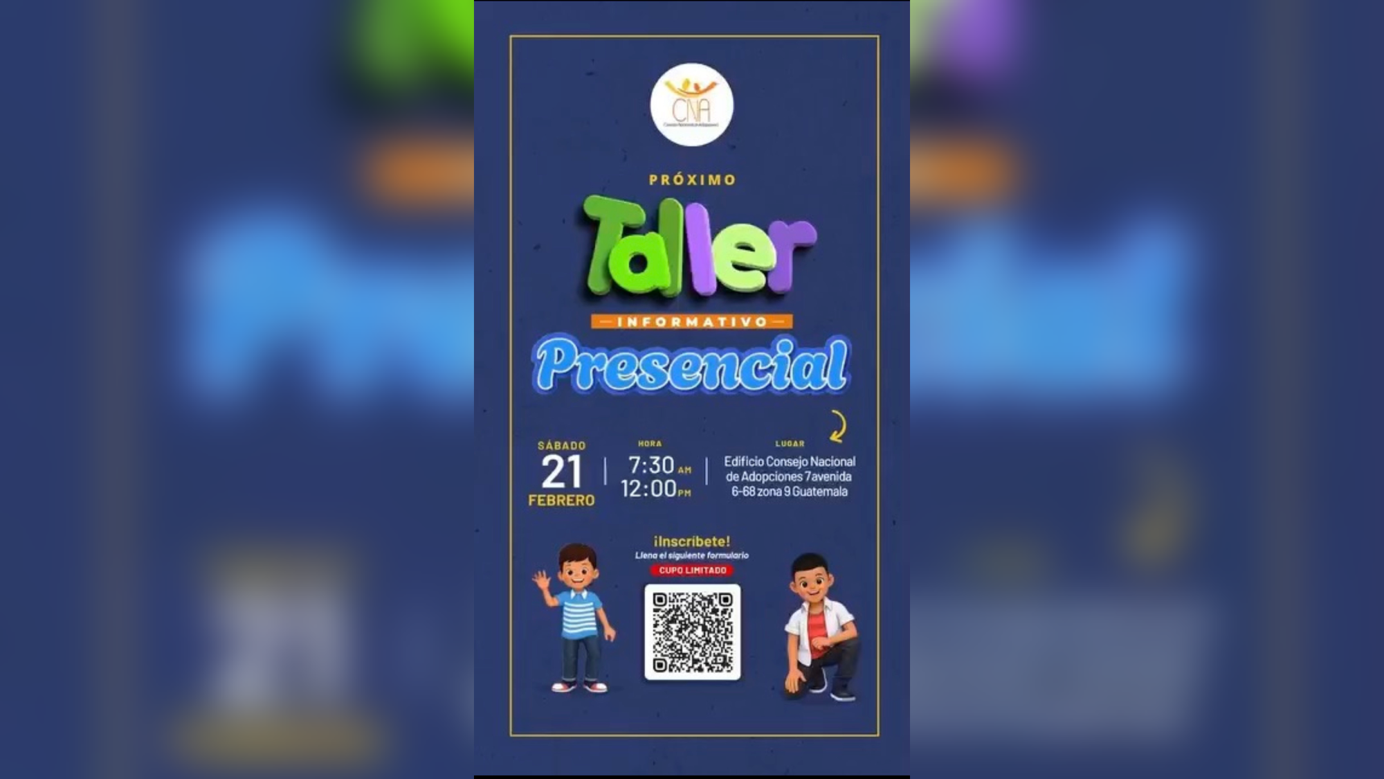 El CNA invita a familias quetzaltecas y extranjeros con residencia permanente a participar en el taller informativo virtual a través del sitio web www.cna.gob.gt.