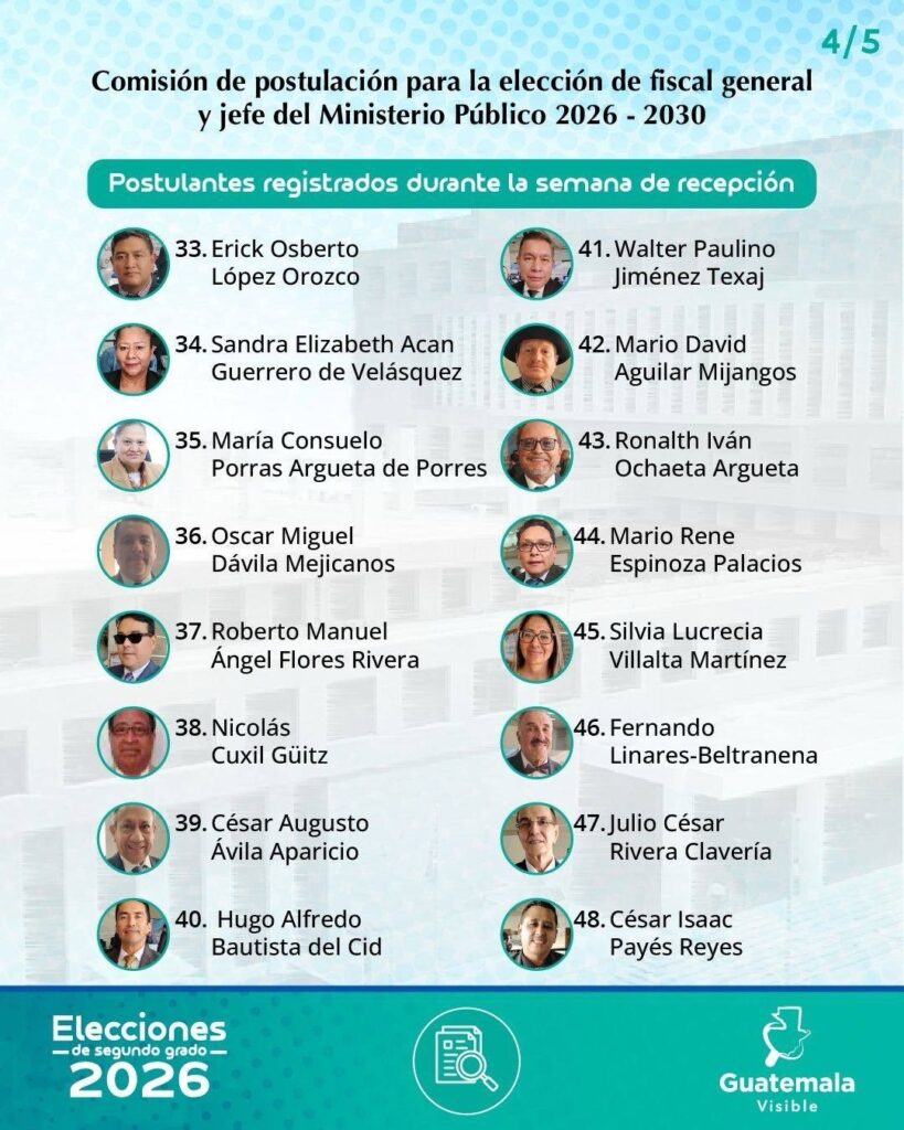 Con el cierre de esta fase administrativa, la Comisión iniciará el proceso de revisión de requisitos legales, evaluación de méritos académicos y profesionales, así como el análisis de idoneidad y honorabilidad de los postulantes.