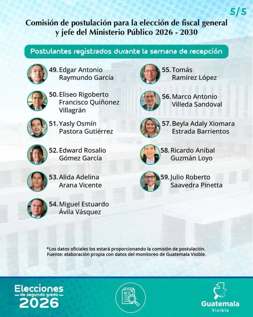 La Comisión de Postulación concluyó el período de recepción de expedientes con un total de 59 profesionales interesados en integrar la nómina de candidatos a Fiscal General y jefe del Ministerio Público.