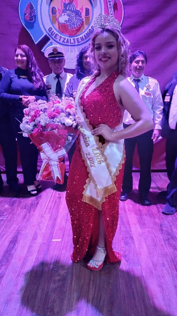 • Sofía Alejandra Chávez Velásquez, de 19 años, fue electa como la nueva madrina de Bomberos Voluntarios de la Quinta Compañía de Quetzaltenango.