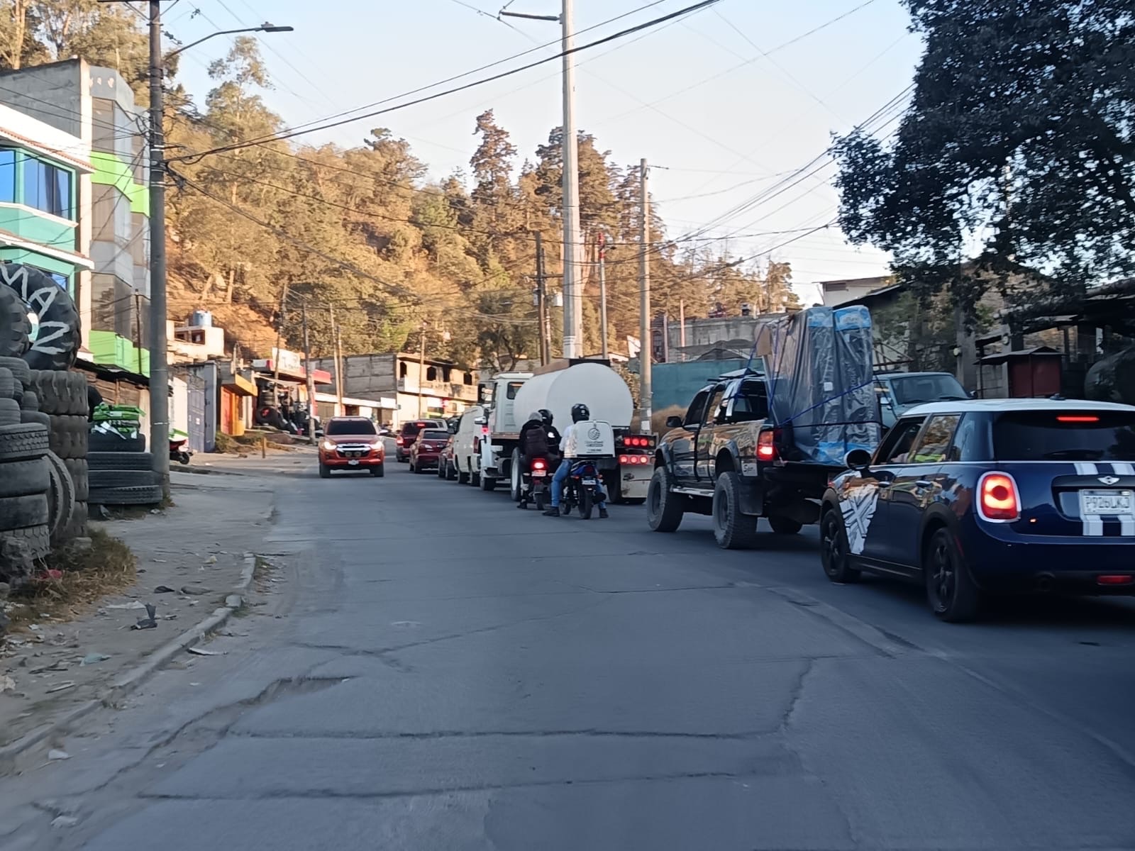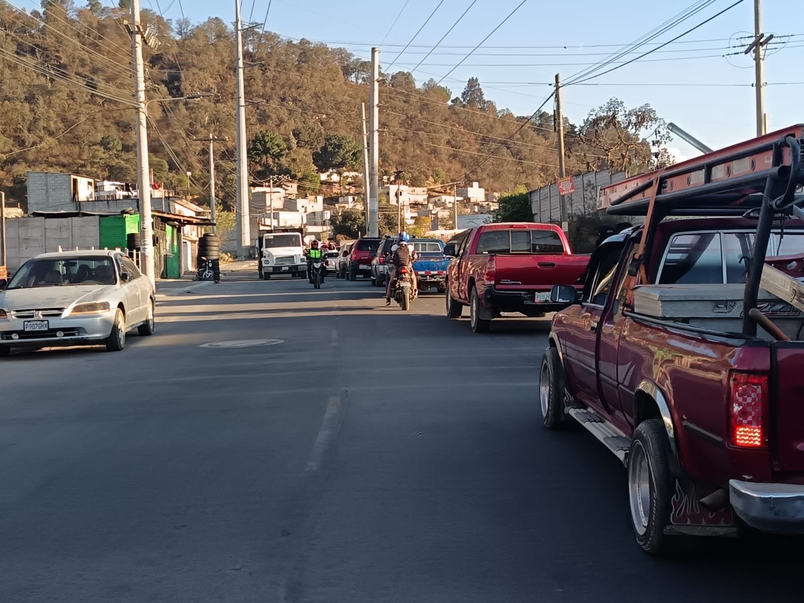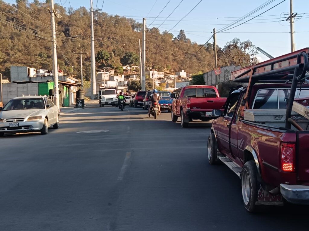 Durante las horas pico, el congestionamiento se intensifica, por lo que se recomienda a los conductores tomar precauciones o considerar rutas alternas si transitan hacia el valle de Palajunoj.
