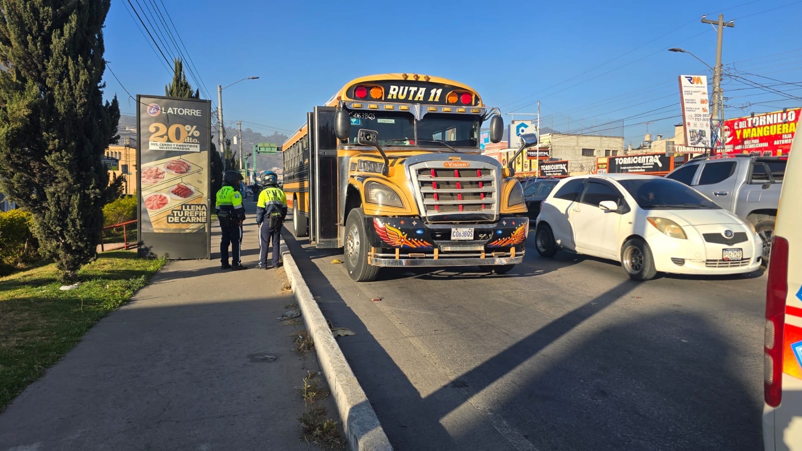 Elementos de la Policía Nacional Civil consignaron el bus involucrado en el accidente de tránsito ocurrido en la Calzada La Independencia, zona 2 de Quetzaltenango, en la entrada hacia la colonia Molina.