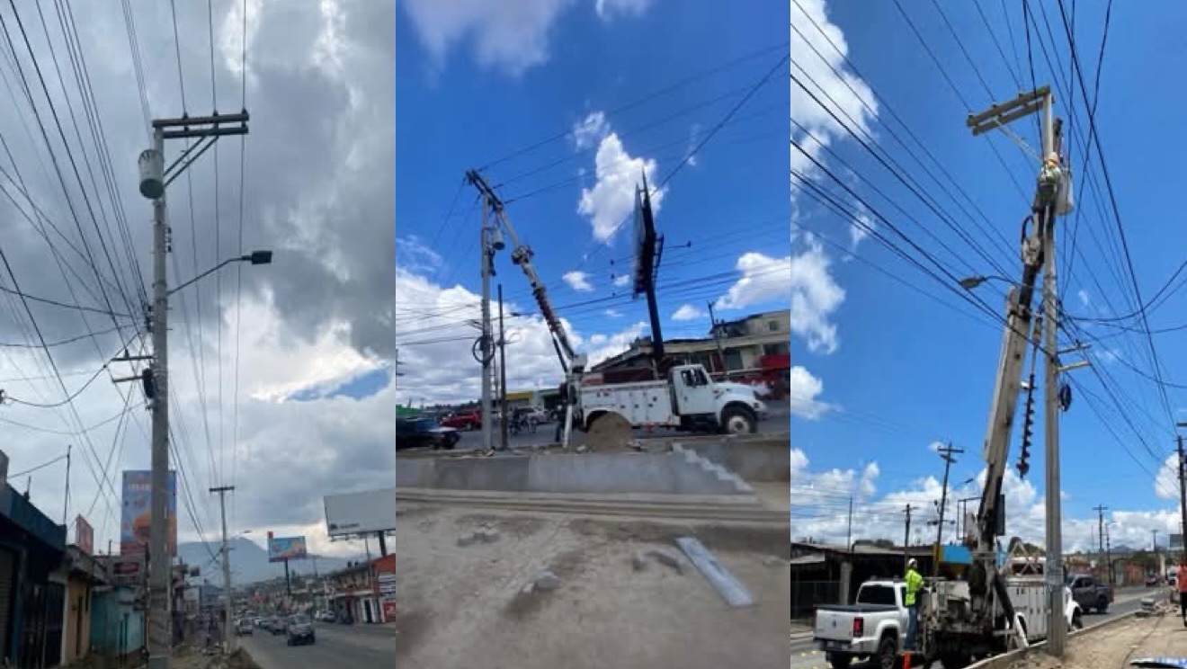 Como estaba planificado, este día se realizó el movimiento de estructuras eléctricas como parte del proyecto de mejoramiento del carril auxiliar en el sector cercano al monumento del Sexto Estado de Los Altos, en la ciudad de Quetzaltenango.