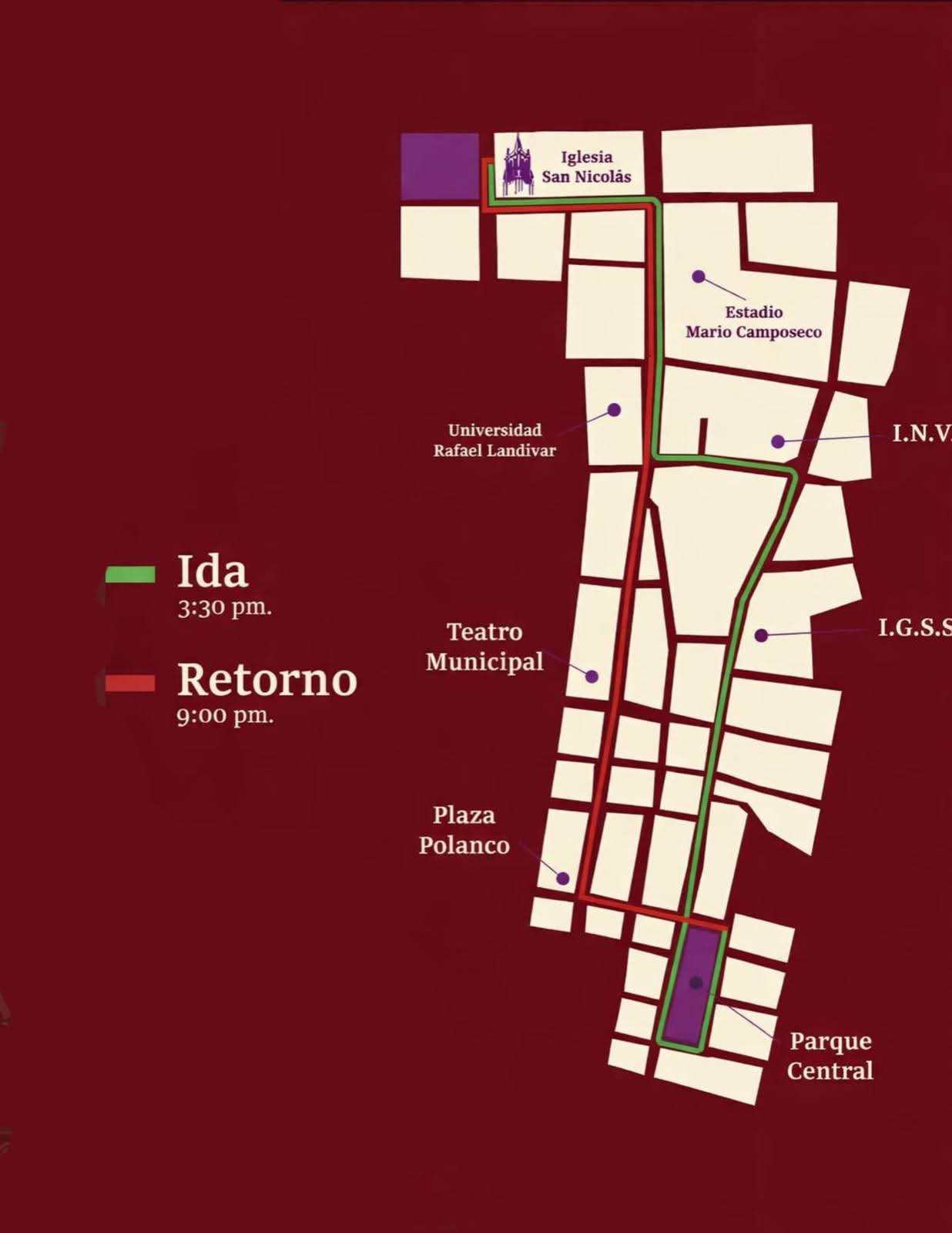 Con motivo del paso del cortejo procesional de Jesus Nazareno y Virgen de Dolores de la parroquia San Nicolás, zona 3 de Quetzaltenango, anuncian cierres viales.