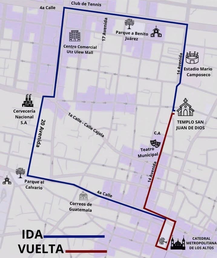 Autoridades recomiendan a los conductores planificar sus recorridos con anticipación y utilizar vías alternas, debido a los cierres viales que se implementarán en sectores de las zonas 1 y 3 de Quetzaltenango, con motivo del cortejo procesional programado para el sábado 22 de febrero a partir de las 15:00 horas. Se prevé alta afluencia de fieles y visitantes en distintos puntos del recorrido.