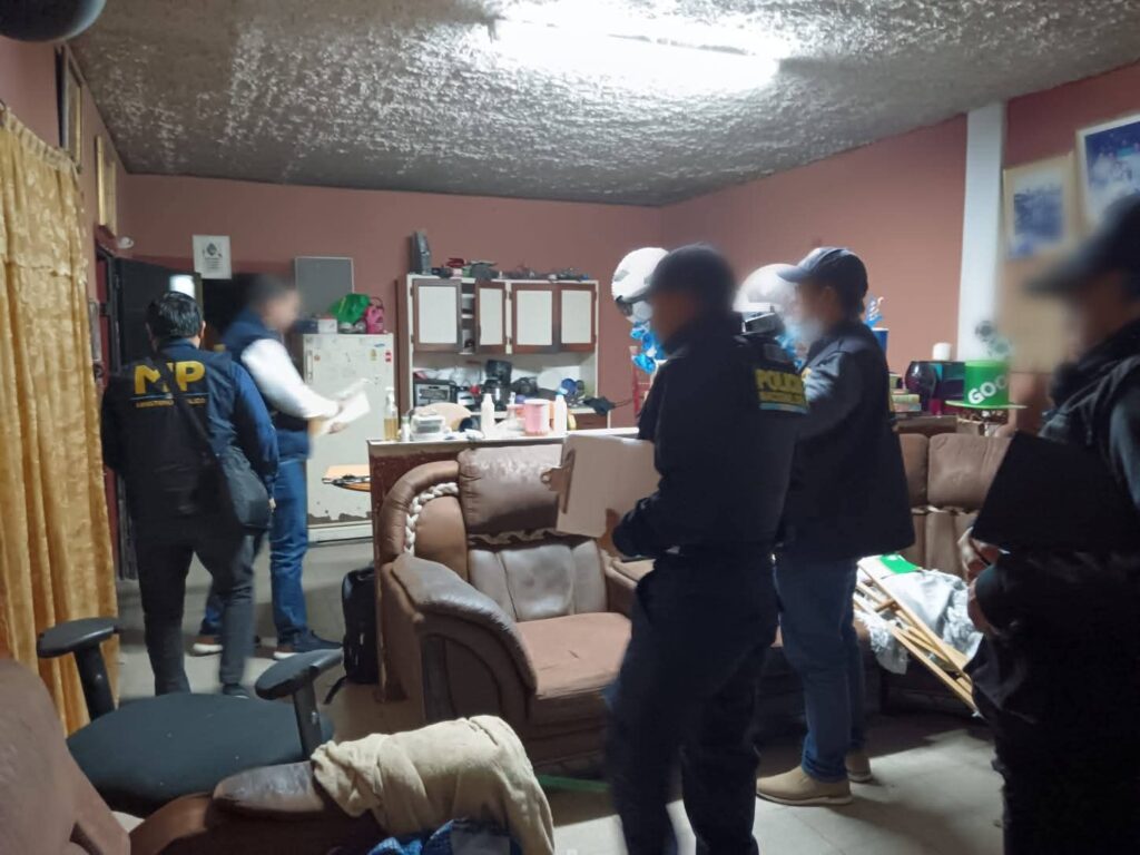 Este lunes, personal de la Fiscalía contra el Tráfico Ilícito de Migrantes del Ministerio Público (MP) y de la Policía Nacional Civil (PNC) desarrollan diligencia en San Miguel Petapa, Guatemala, por el tráfico de migrantes.