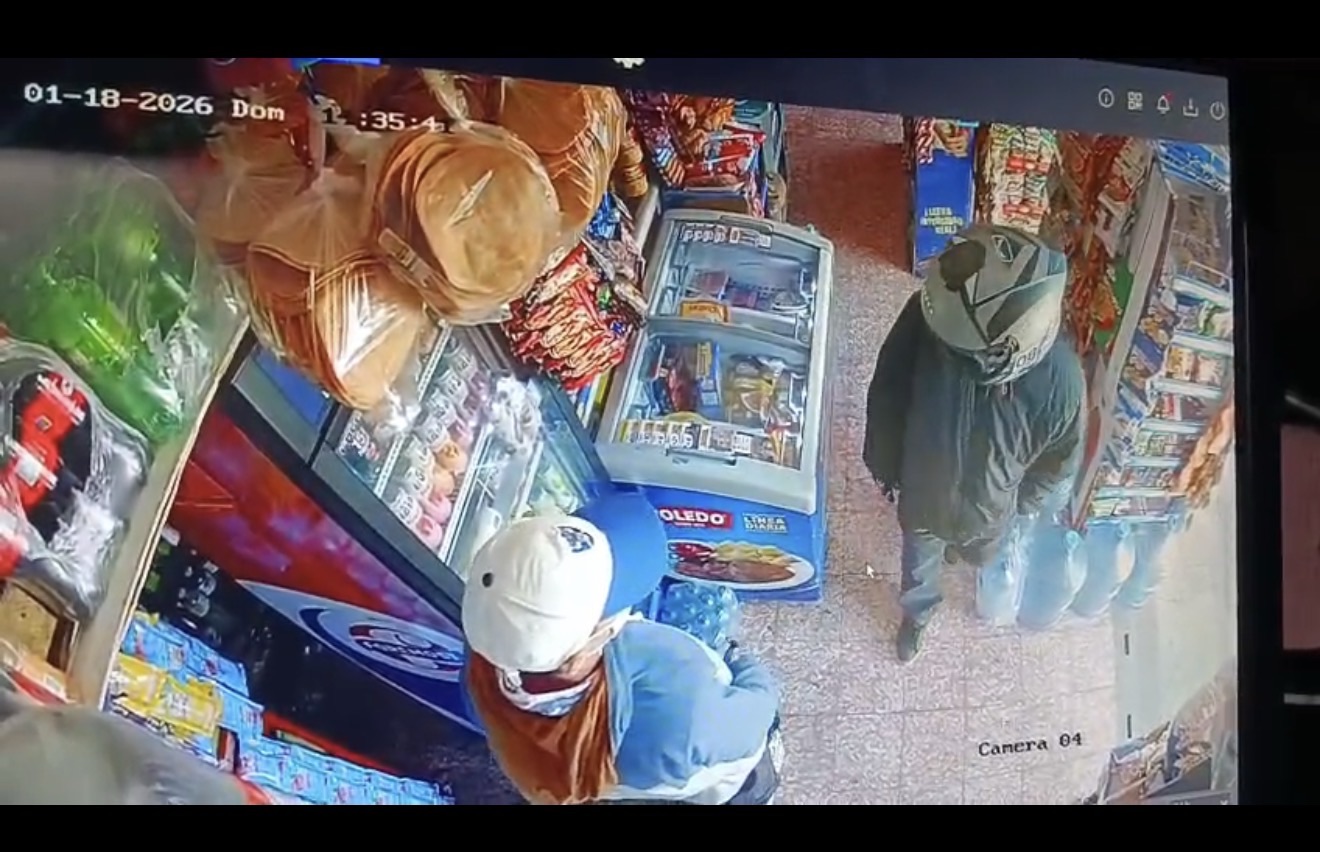 El primero habría utilizado lo que aparenta ser un arma de fuego para amenazar al hombre que se encontraba atendiendo el negocio.