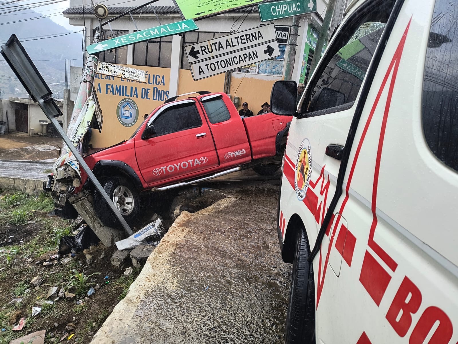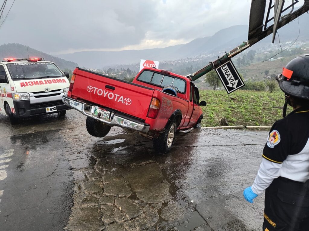 El primer incidente ocurrió en el caserío Choqui, aldea Chipuac, donde por causas que se desconocen el piloto de un vehículo tipo pick up perdió el control del volante y cayó en una hondonada, quedando empotrado en un poste.