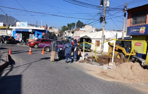 Por la complejidad de los trabajos, el paso vehicular fue cerrado y se cuenta con el apoyo de agentes de la Policía Municipal de Tránsito de Quetzaltenango (PMTQ). «