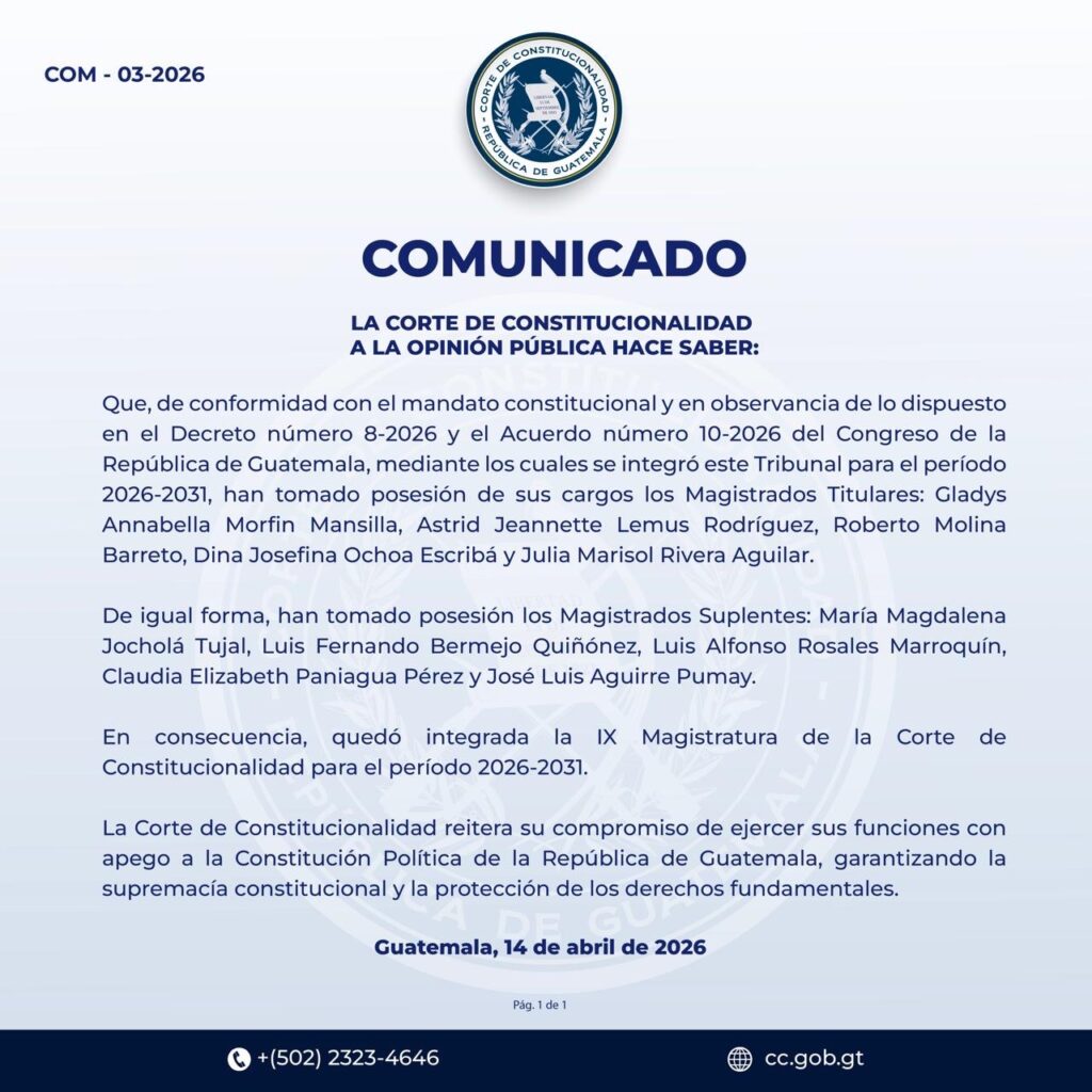 CIUDAD DE GUATEMALA — Bajo un clima de alta presión institucional, la nueva magistratura de la Corte de Constitucionalidad (CC) asumió sus funciones para el período constitucional correspondiente.